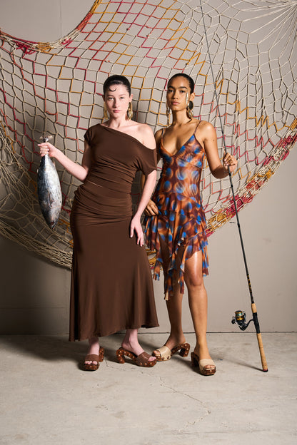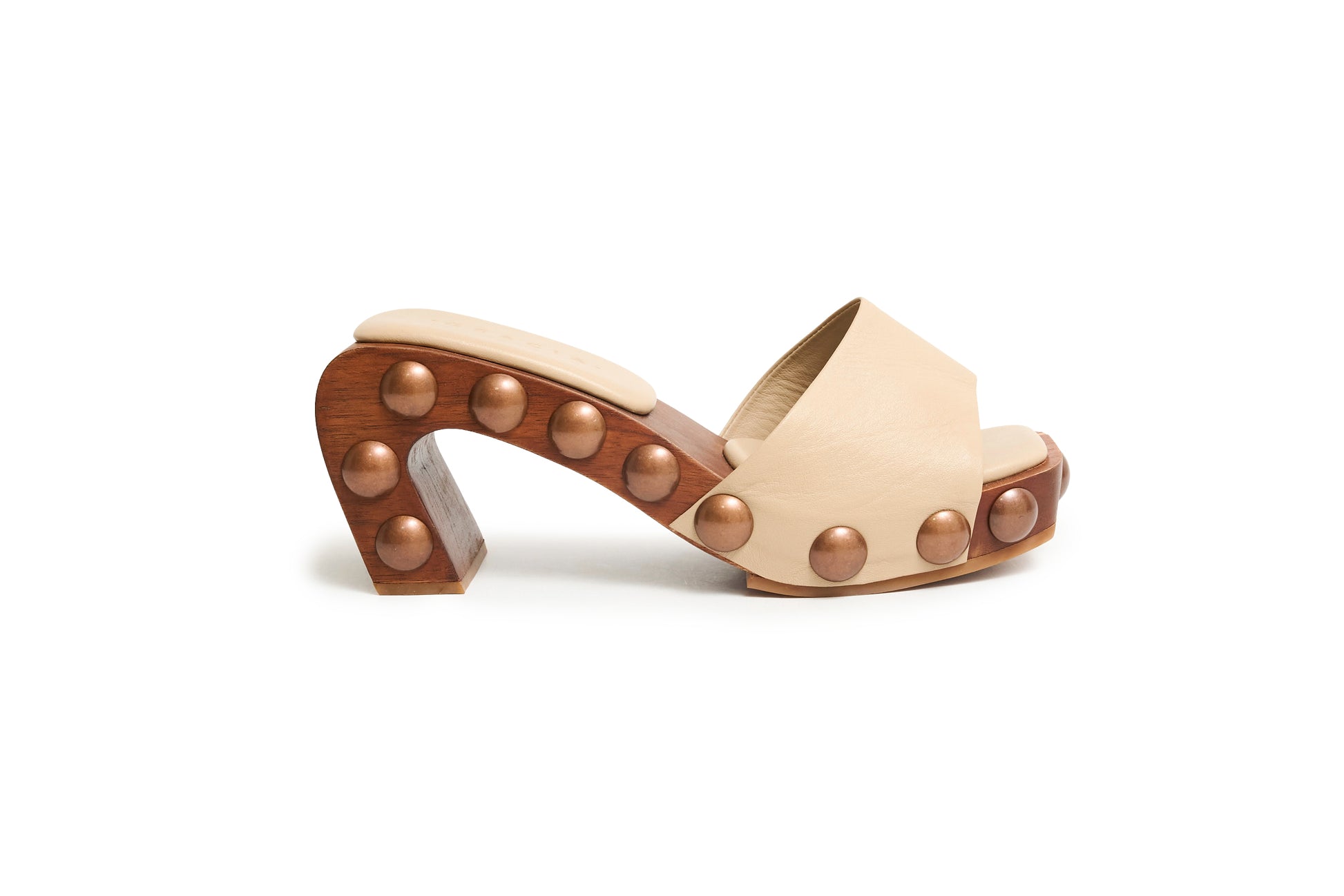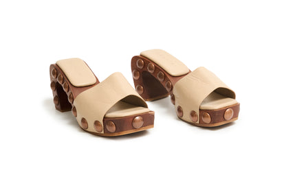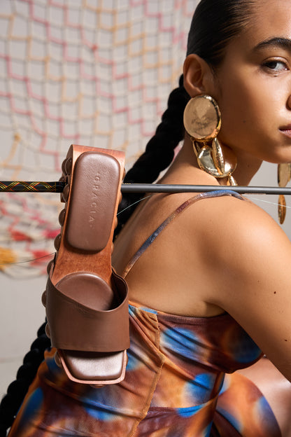 Estas sandalias hechas a mano en cuero combinan un diseño distintivo y acentos metálicos para un look audaz y sofisticado. La base tipo madera curvada, con aplicaciones en volumen, aporta carácter y originalidad. Aunque el tacón mide 11.5 cm, la plataforma reduce la inclinación, generando una sensación de altura de solo 4.5 cm. Ideales para quienes buscan estilo con impacto y comodidad.